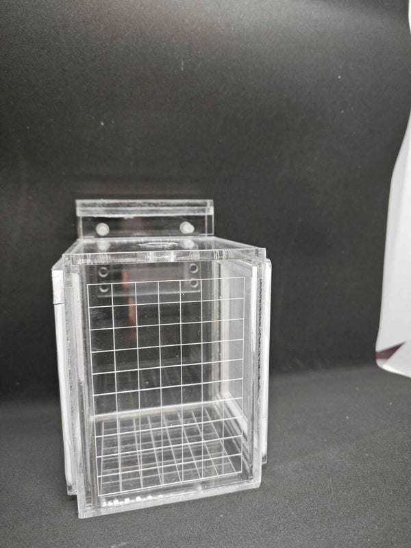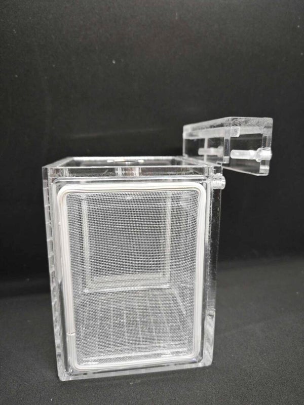 Deze handgemaakte acryl breeder box is perfect voor selectief kweken en uit selecteren. De breederbox is aan beide zijden voorzien van netten om de water door stroming te bevorderen. De kweekbak wordt nu geleverd met verstelbare hoogte voor verschillende waterniveaus in de tank.