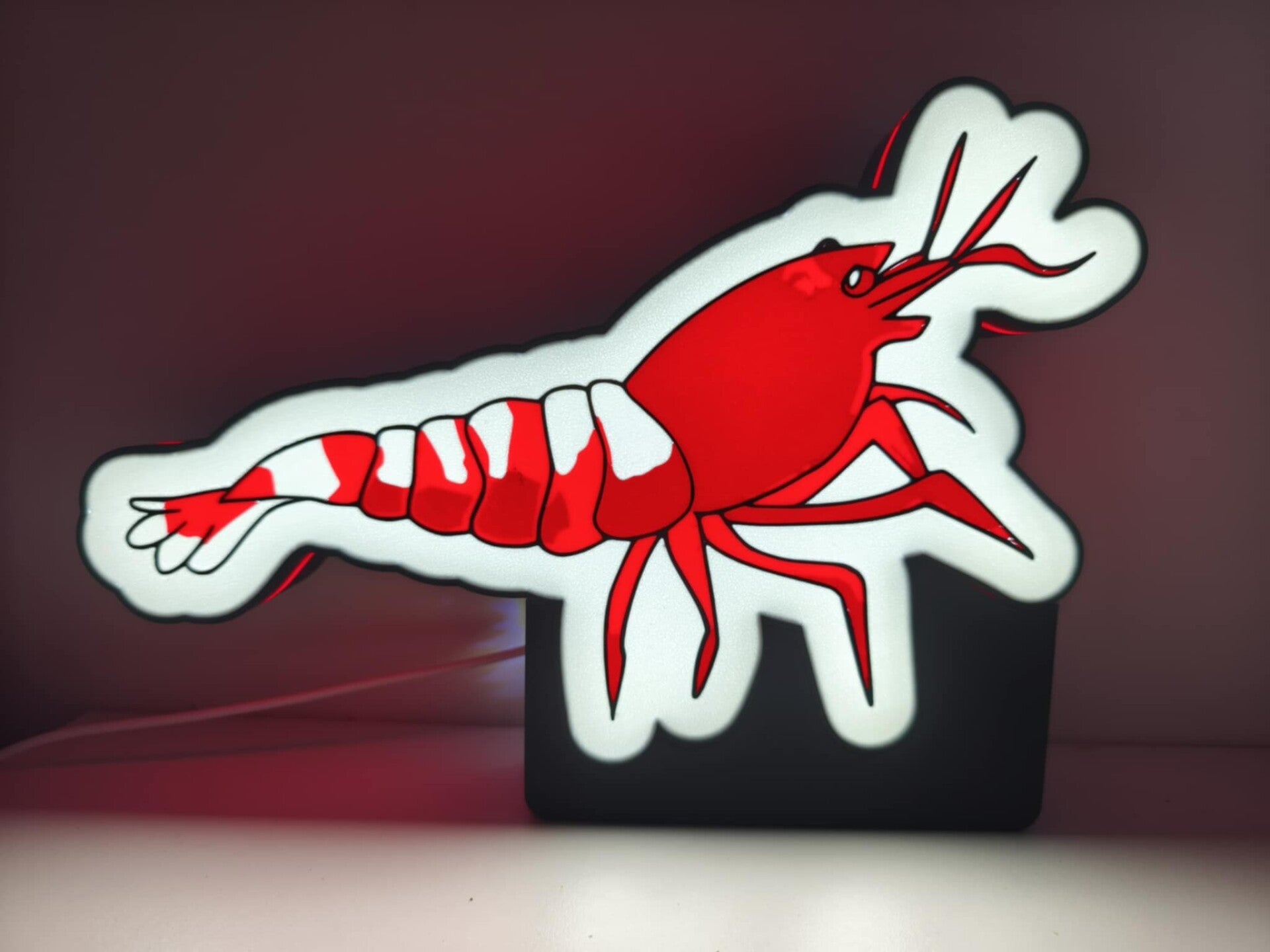 Deze eye catcher van een crystal red led board staat prachtig in jouw shrimp room of andere plaats in huis. dewe heeft een grote van B30cmX hoogte 23cm en er zit led ingebouwd met usb uitgang.